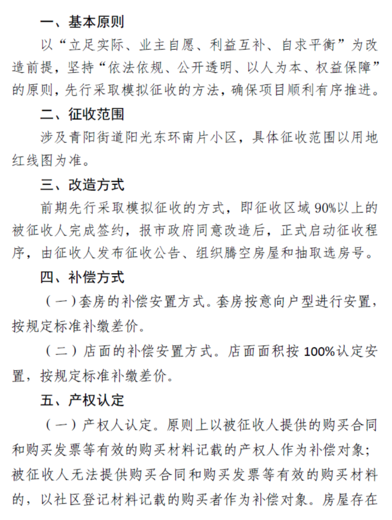 涉及青阳街道阳光东环南片小区,具体征收范围以征收红线图为准(详见附件1)。