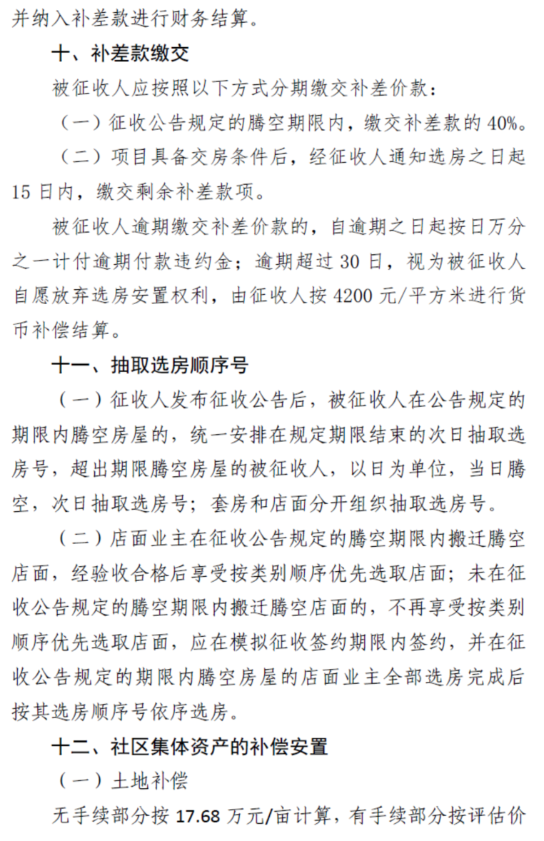 (一)被征收人应在2023年9月24日前缴交补差款总额的40%。