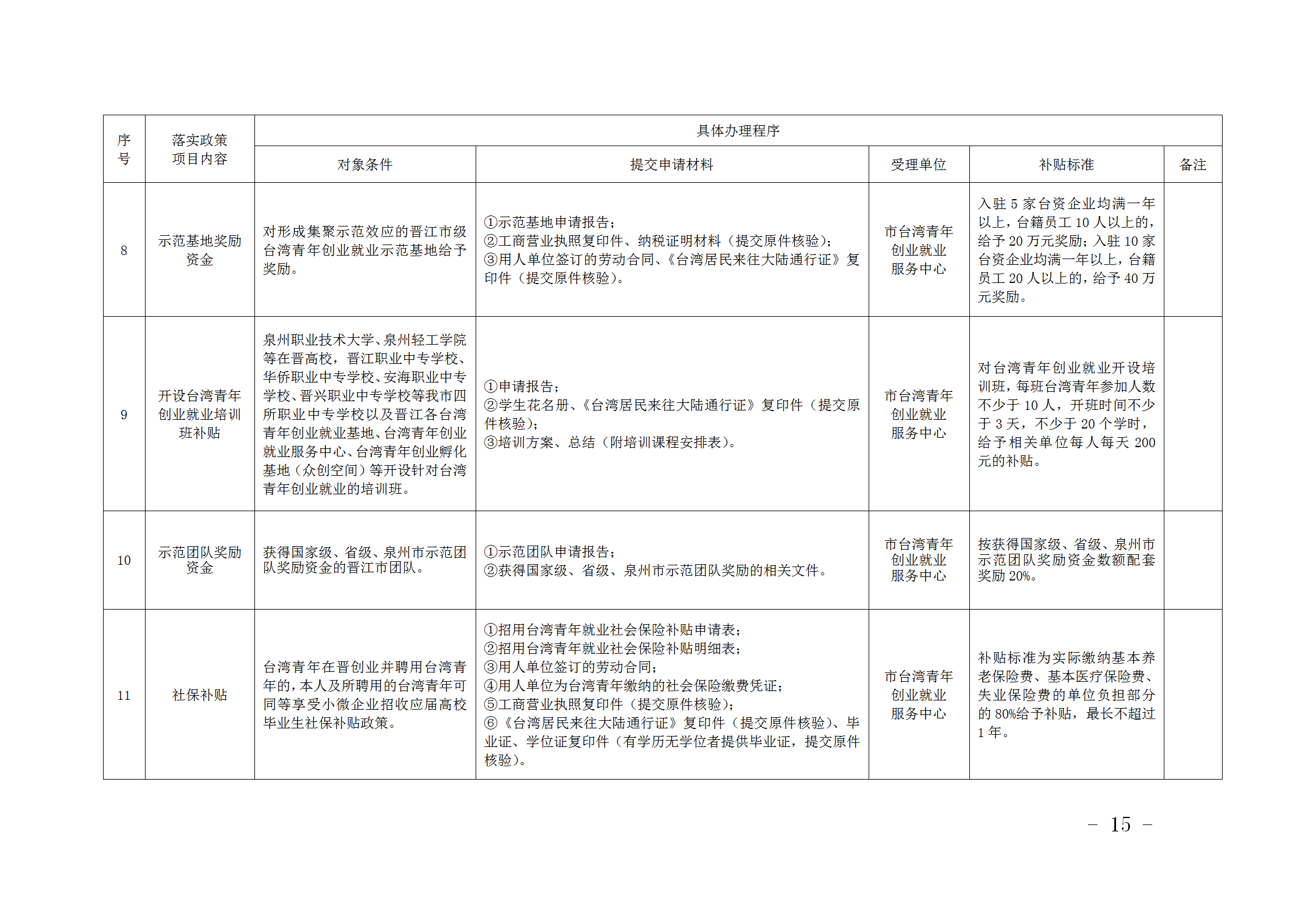 责任单位:市委台港澳办、团市委,市财政局、人社局,泉州半导体高新区管委会晋江分园区办事处