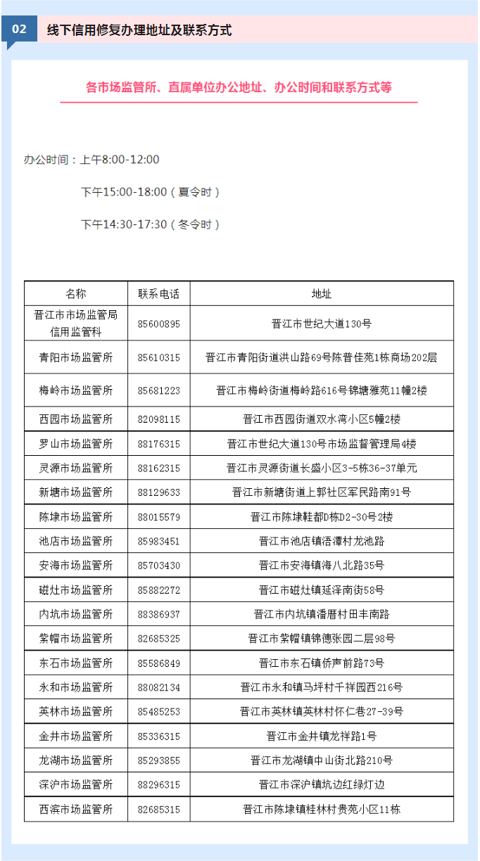 2.线下信用修复办理地址及联系方式