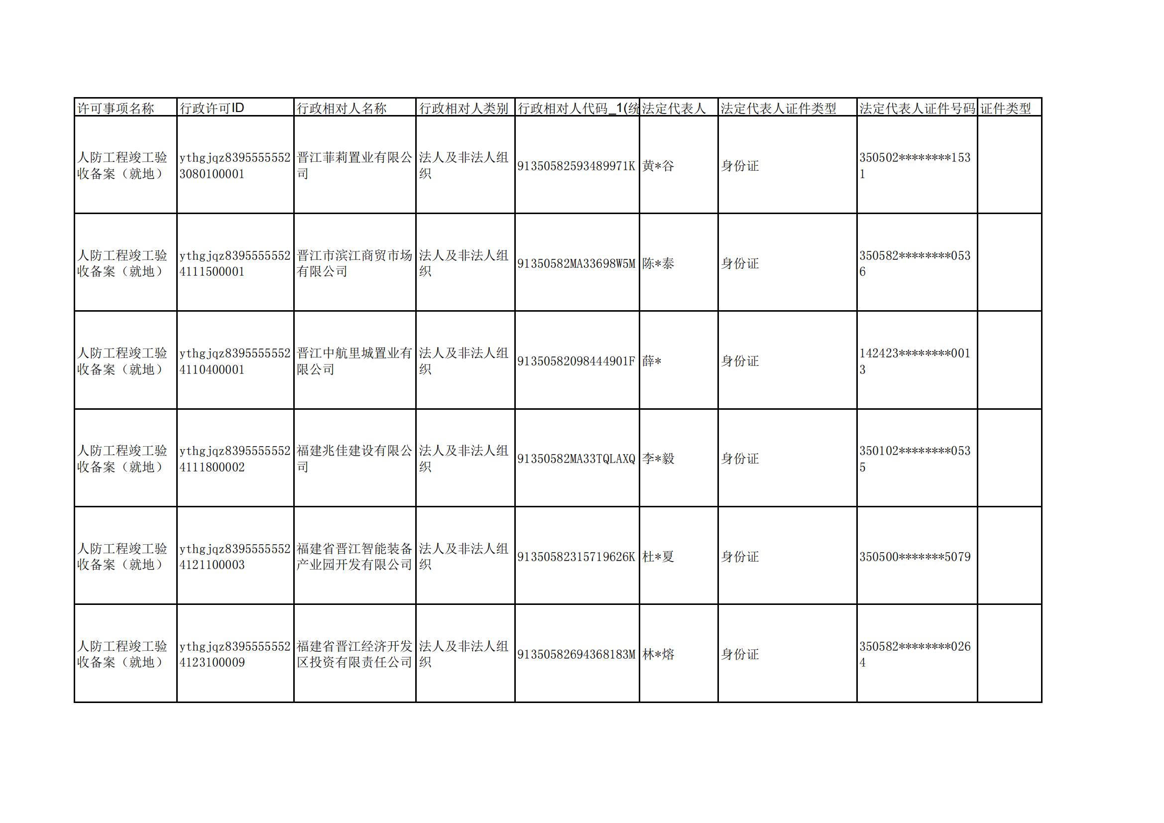晋江人防2024年12月竣工备案信息公示