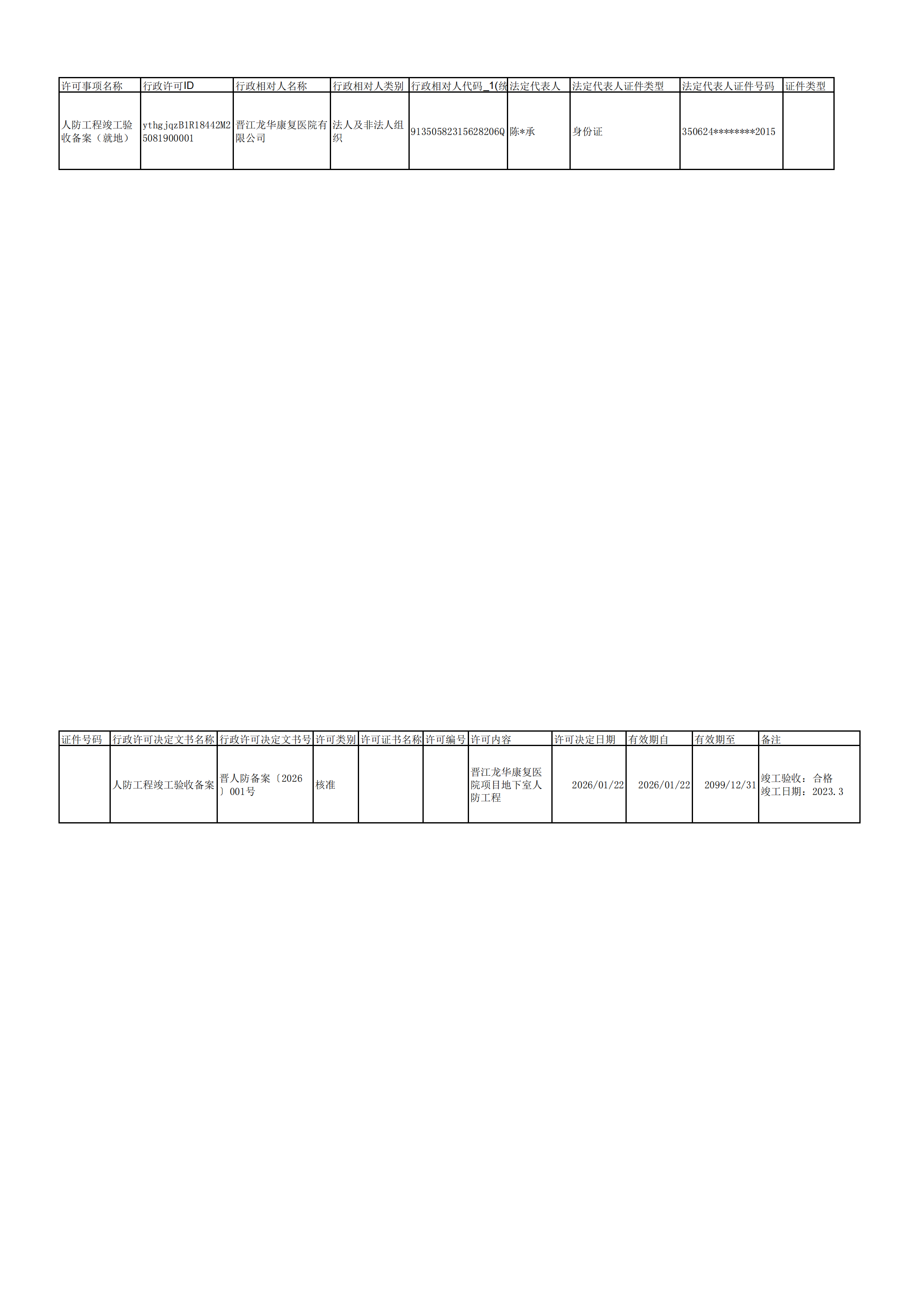 晋江国动办2026年1月竣工备案信息公示