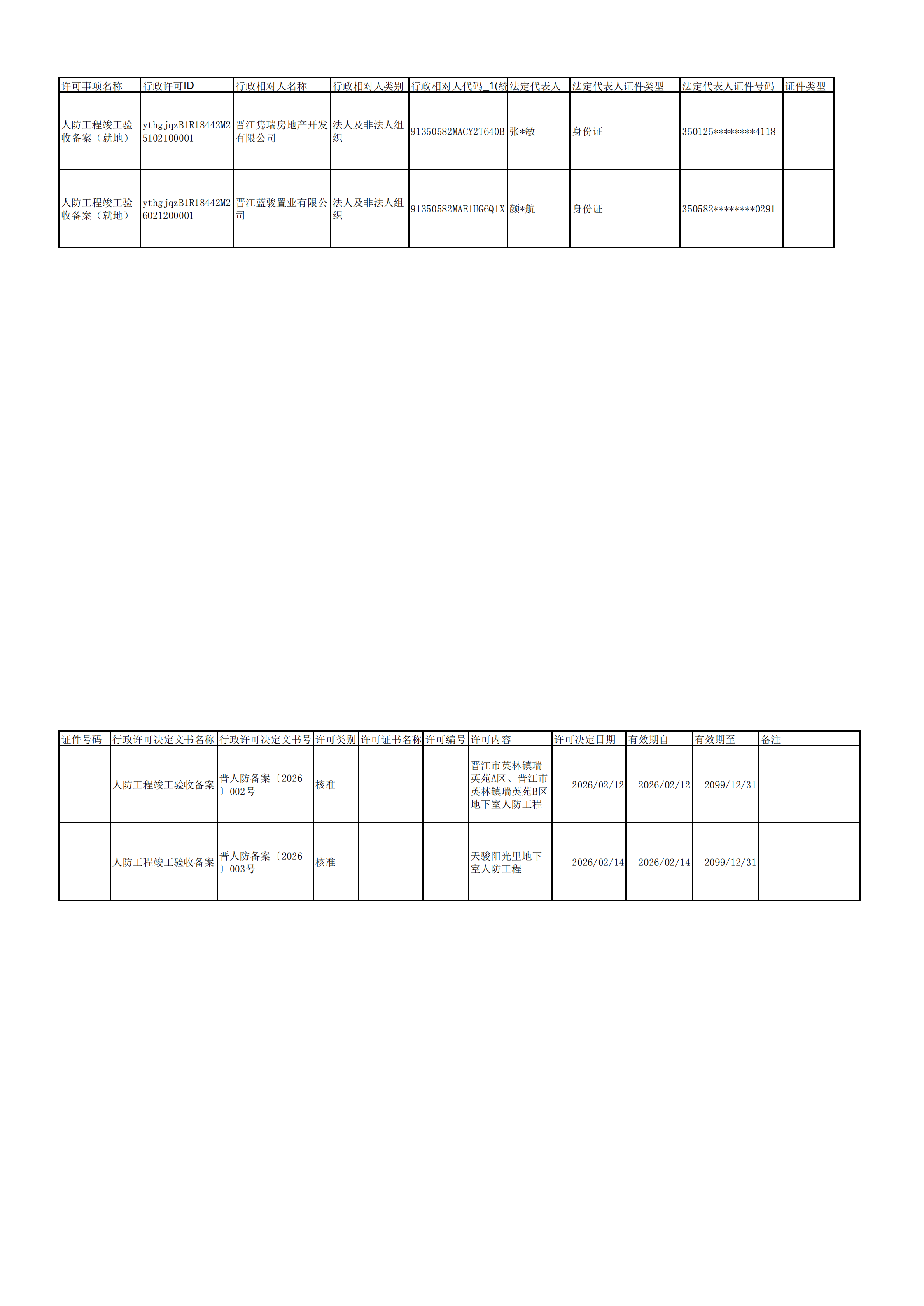 晋江国动办2026年2月竣工备案信息公示